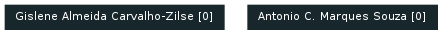 2 curriculos Lattes foram considerados, gerando os seguintes grafos de colaborações encontradas com base nas produções: Artigos completos publicados em periódicos, Livros publicados/organizados ou edições, Capítulos de livros publicados, Textos em jornais de notícias/revistas, Trabalhos completos publicados em anais de congressos, Resumos expandidos publicados em anais de congressos, Resumos publicados em anais de congressos, Artigos aceitos para publicação, Apresentações de trabalho, Demais tipos de produção bibliográfica.