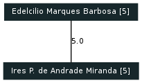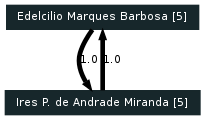 2 curriculos Lattes foram considerados, gerando os seguintes grafos de colaborações encontradas com base nas produções: Artigos completos publicados em periódicos, Livros publicados/organizados ou edições, Capítulos de livros publicados, Textos em jornais de notícias/revistas, Trabalhos completos publicados em anais de congressos, Resumos expandidos publicados em anais de congressos, Resumos publicados em anais de congressos, Artigos aceitos para publicação, Apresentações de trabalho, Demais tipos de produção bibliográfica.