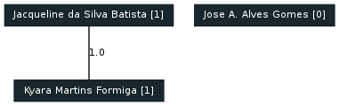 3 curriculos Lattes foram considerados, gerando os seguintes grafos de colaborações encontradas com base nas produções: Artigos completos publicados em periódicos, Livros publicados/organizados ou edições, Capítulos de livros publicados, Textos em jornais de notícias/revistas, Trabalhos completos publicados em anais de congressos, Resumos expandidos publicados em anais de congressos, Resumos publicados em anais de congressos, Artigos aceitos para publicação, Apresentações de trabalho, Demais tipos de produção bibliográfica.