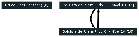 3 curriculos Lattes foram considerados, gerando os seguintes grafos de colaborações encontradas com base nas produções: Artigos completos publicados em periódicos, Livros publicados/organizados ou edições, Capítulos de livros publicados, Textos em jornais de notícias/revistas, Trabalhos completos publicados em anais de congressos, Resumos expandidos publicados em anais de congressos, Resumos publicados em anais de congressos, Artigos aceitos para publicação, Apresentações de trabalho, Demais tipos de produção bibliográfica.