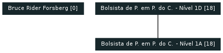 Clique no nome dentro do vértice para visualizar o currículo Lattes. Para cada nó: o valor entre colchetes indica o número de produções feitas em colaboração apenas com os outros membros do próprio grupo.