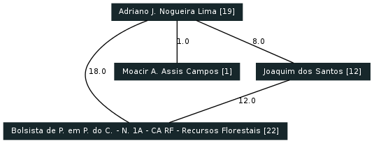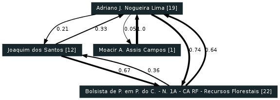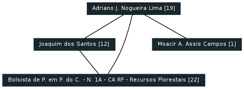 4 curriculos Lattes foram considerados, gerando os seguintes grafos de colaborações encontradas com base nas produções: Artigos completos publicados em periódicos, Livros publicados/organizados ou edições, Capítulos de livros publicados, Textos em jornais de notícias/revistas, Trabalhos completos publicados em anais de congressos, Resumos expandidos publicados em anais de congressos, Resumos publicados em anais de congressos, Artigos aceitos para publicação, Apresentações de trabalho, Demais tipos de produção bibliográfica.