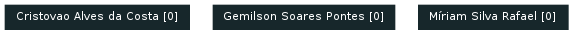 3 curriculos Lattes foram considerados, gerando os seguintes grafos de colaborações encontradas com base nas produções: Artigos completos publicados em periódicos, Livros publicados/organizados ou edições, Capítulos de livros publicados, Textos em jornais de notícias/revistas, Trabalhos completos publicados em anais de congressos, Resumos expandidos publicados em anais de congressos, Resumos publicados em anais de congressos, Artigos aceitos para publicação, Apresentações de trabalho, Demais tipos de produção bibliográfica.