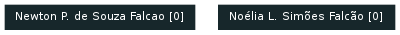 2 curriculos Lattes foram considerados, gerando os seguintes grafos de colaborações encontradas com base nas produções: Artigos completos publicados em periódicos, Livros publicados/organizados ou edições, Capítulos de livros publicados, Textos em jornais de notícias/revistas, Trabalhos completos publicados em anais de congressos, Resumos expandidos publicados em anais de congressos, Resumos publicados em anais de congressos, Artigos aceitos para publicação, Apresentações de trabalho, Demais tipos de produção bibliográfica.