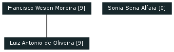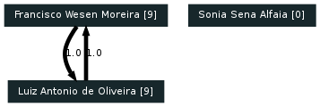 3 curriculos Lattes foram considerados, gerando os seguintes grafos de colaborações encontradas com base nas produções: Artigos completos publicados em periódicos, Livros publicados/organizados ou edições, Capítulos de livros publicados, Textos em jornais de notícias/revistas, Trabalhos completos publicados em anais de congressos, Resumos expandidos publicados em anais de congressos, Resumos publicados em anais de congressos, Artigos aceitos para publicação, Apresentações de trabalho, Demais tipos de produção bibliográfica.